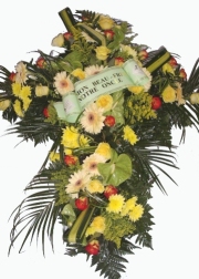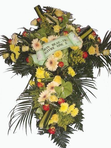 Croix de fleurs coupées entre 200 € et 250 €.