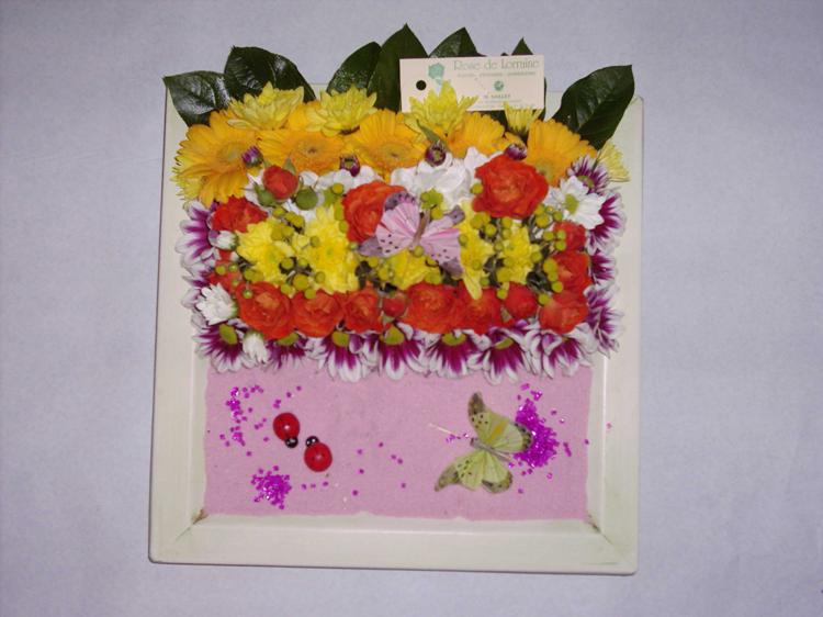 Joli plateau printanier de fleurs variées piquées dans la mousse 30 € |